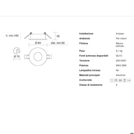 FARETTO DA INCASSO TROMBA BIANCO GU10 230V ISYLUCE