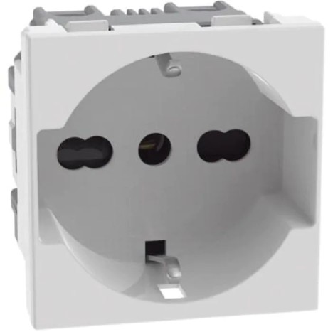 BTICINO PRESA BOSCH CON INTERASSE 19MM E 26MM IN CONFIGURAZIONE BIPASSO , ALVEOLI PROTETTI ; CONTATTI LATERALI DI TERRA PER SPINE STANDARD TEDESCO ADATTA PER :