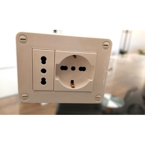 BTICINO SCATOLA KIT MATIXGO BIANCO IP40 3 MODULI CON PRESA BOSH STD GERMANIA P40 10/16A + PRESA BIPASSO STD ITALIA 10/16A. CON VITI IMPERDIBILI A 90 °, ROBUSTE E VELOCI .PRESENTA UNA MEMBRANA ELASTICA IP55 A TENUTA STAGNA PER UN FACILE E RAPIDO INSERIMENTO DEI TUBI SENZA ATTREZZI . PRESENTA INOLTRE DEGLI AMMORTIZZATORI NEL LATO POSTERIORE PER UNA MIGLIORE TENUTA A MURO.