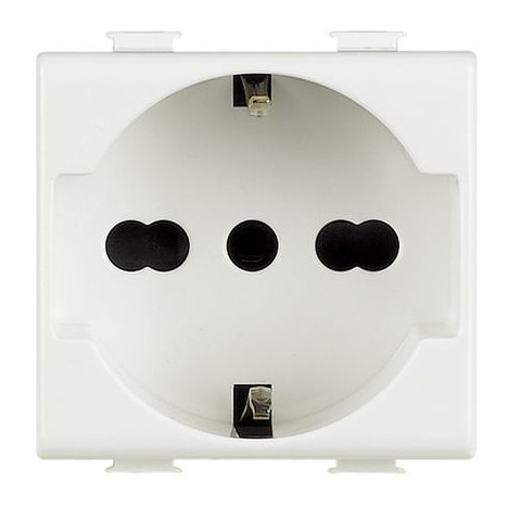 BTICINO MATIX PRESA BOSCH 2P+T 16A - 250 VA.C INTERASSE 19mmE 26mm , IN CONFIGURAZIONE BIPASSO , ALVEOLI PROTETTI , CONTATTI LATERALI DI TERRA PER SPINE STANDARD TEDESCO ; ADATTA PER SPINE STANDARD ITALIA 2P E 2P +T 10A E 16A , SPINE STANDARD TEDESCO 2P+T 16A