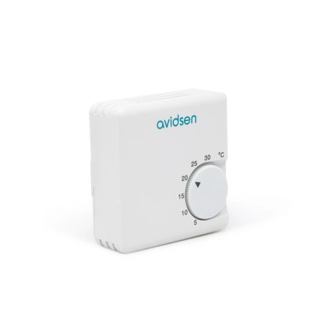 Termostato analogico on/off, installazione da parete semplice ed efficace, per gestire la temperature di casa ed ufficio, tensione 230VAC. Dimensioni 70x70x27mm