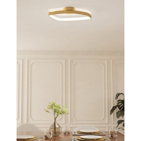 LA LINEA EGLO , CI PROPONE VALLEROSA , UNA BELLISSIMA PLAFONIERA DA SOFFITTO CON UN DESIGN RAFFINATO ED ELEGANTE CON INTERRUTORE DIMMER REGOLABILE, EMANANDO UNA PIACEVOLE LUCE BIANCA CALDA . LA STRUTTURA E' COMPOSTA IN ALLUMINIO DALLA COLORAZIONE ORO SPAZZOLATO , MENTRE IL DIFFUSORE E' REALIZZATO IN POLICARBONATO BIANCO. IL PRODOTTO HA LE SEGUENTI DIMENSIONI : ALTEZZA 4 CM , LARGHEZZA 33,5 CM , LUNGHEZZA 58 CM.