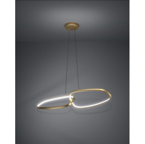 LA LINEA EGLO PROPONE LODOSA UNA BELLISSIMA LAMPADA A SOSPENSIONE , REALIZZATA IN METALLO COLOR ORO SOPAZZOLATO E' CARATTERIZZATA DA UN DESIGN ORIGINALE E MINIMALISTA DATO DALLA SUA FORMA SFERICA INTRECCIATA . I LED INTEGRATI DIETRO LE SUPERFICI LUMINOSE SONO REALIZZATI IN PLASTICA BIANCA IL QUALE DIFFONDONO UNA CONFORTEVOLE LUCE BIANCA CALDA CHE SI PUO' REGOLARE GRAZIE AL DIMMER .LE SUE DIMENSIONE SONO LE SEGUENTI : ø 18 CM x H 110 CM x L 113 CM