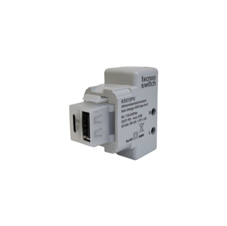 Il kS312PU è un alimentatore e caricabatterie USB progettato per l' installazione a incasso in ambito civile e terziario. Questo modulo permette di ricaricare dispositivi (tablet, smartphone) direttamente dalla parete , eliminando la necessità di ingombranti adattatori esterni.