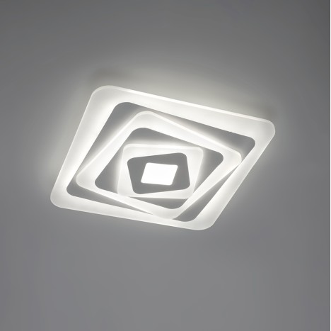 LA PLAFONIERA LED PER SOFFITTO CLEO S, PRESENTA UN DESIGN PARTICOLARE GRAZIE ALLA CARATTERISTICA DELLA SUA FORMA PIRAMIDALE , IL CHE' LA RENDE ORIGINALE E MODERNA. INOLTRE GRAZIE AL SUO SISTEMA ACLICK , PERMETTE DI MODIFICARE IL COLORE DELLA LUCE DA CALDA A NEUTRA ,REALIZZATA DA METALLO VERNICIATO +ACRILICO DI COLORE BIANCO CON DIMENSIONI 40cm x 40cm x 5,5 cm